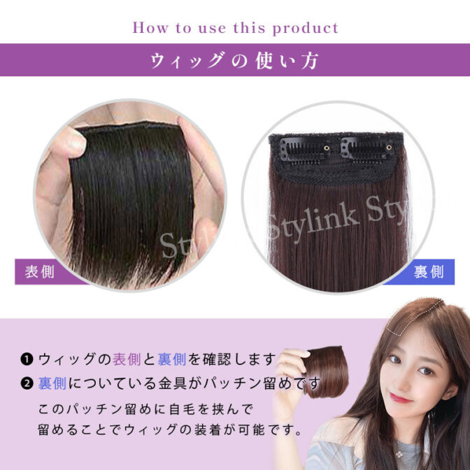《補足説明 パッチン留めの開閉、ウイッグ装着方法》